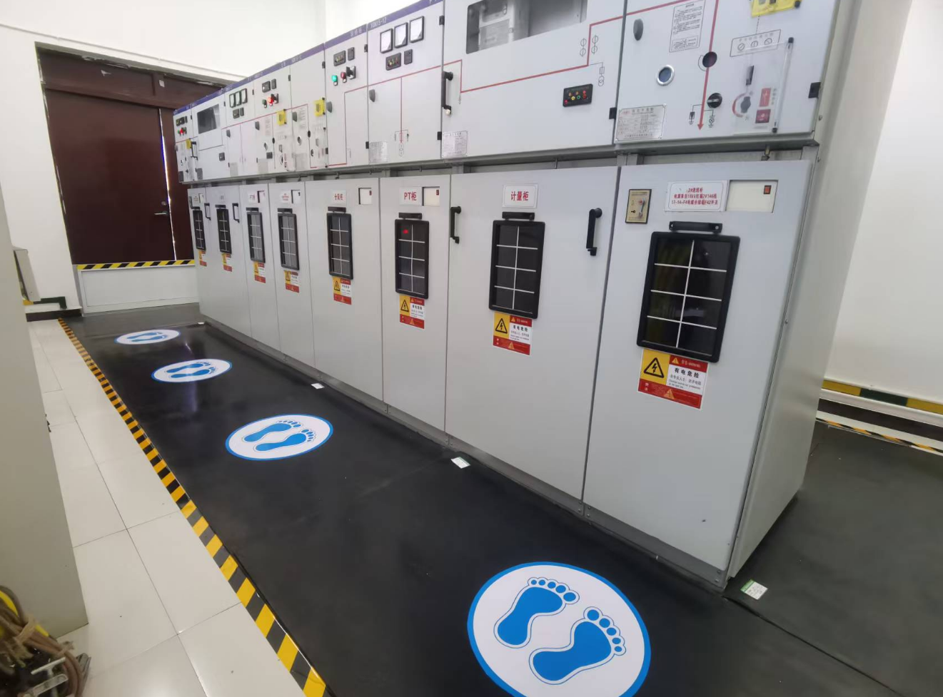 閘站作為防汛工作的重要設(shè)施,其配電房更是保障電力供應(yīng)的關(guān)鍵樞紐,安全管理責(zé)任重大。建發(fā)公司嚴(yán)格遵循GB 2893-2008《安全色》國家標(biāo)準(zhǔn),科學(xué)規(guī)劃、精準(zhǔn)施策,在5所閘站配電房的操作區(qū)域規(guī)范設(shè)置地面警示標(biāo)貼180米,安裝安全警示標(biāo)貼28個。這些標(biāo)識采用國際通用的安全色標(biāo),布局合理、醒目清晰,有效劃定了安全操作區(qū)域,為運(yùn)維人員提供了明確的操作指引,顯著降低了誤操作風(fēng)險(xiǎn),切實(shí)防范了觸電等安全事故的發(fā)生。